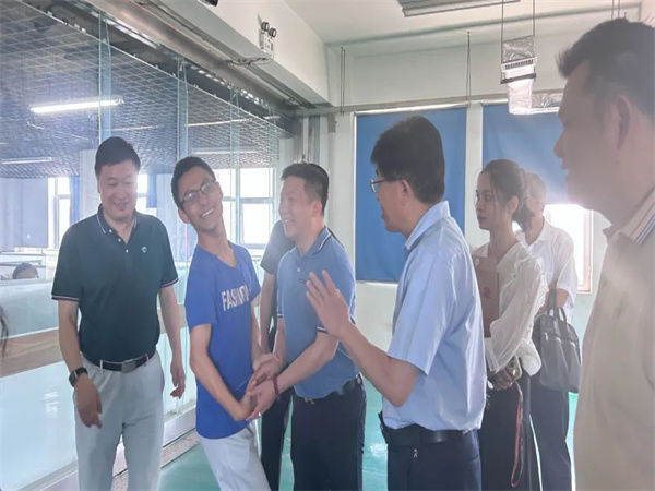 在參觀(guān)公司產(chǎn)線(xiàn)和研發(fā)中心過(guò)程中,林董一行與企業(yè)中安置的殘障員工還進(jìn)行了親切交談。林董作為長(cháng)期關(guān)注和致力公益事業(yè)的臺商企業(yè)家,對科大中天的“愛(ài)心能聚眾、堅韌致成功”的企業(yè)精神,給予了高度評價(jià),并表達了為泰安社會(huì )經(jīng)濟發(fā)展盡綿薄之力的真摯愿望!